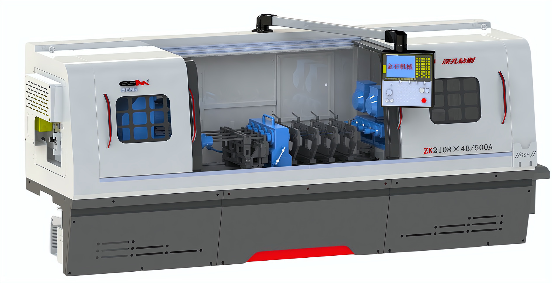 工件裝卸:人工裝卸工件 裝夾方式:采用液壓筒夾+液壓中心架,夾持工件兩端外圓,定位精度高,裝夾便捷,需用輔具少 加工方式:工件旋轉或固定,鉆桿旋轉且進給 應用領域:醫(yī)療器械、模具、汽車零部件等回轉軸類零件" />