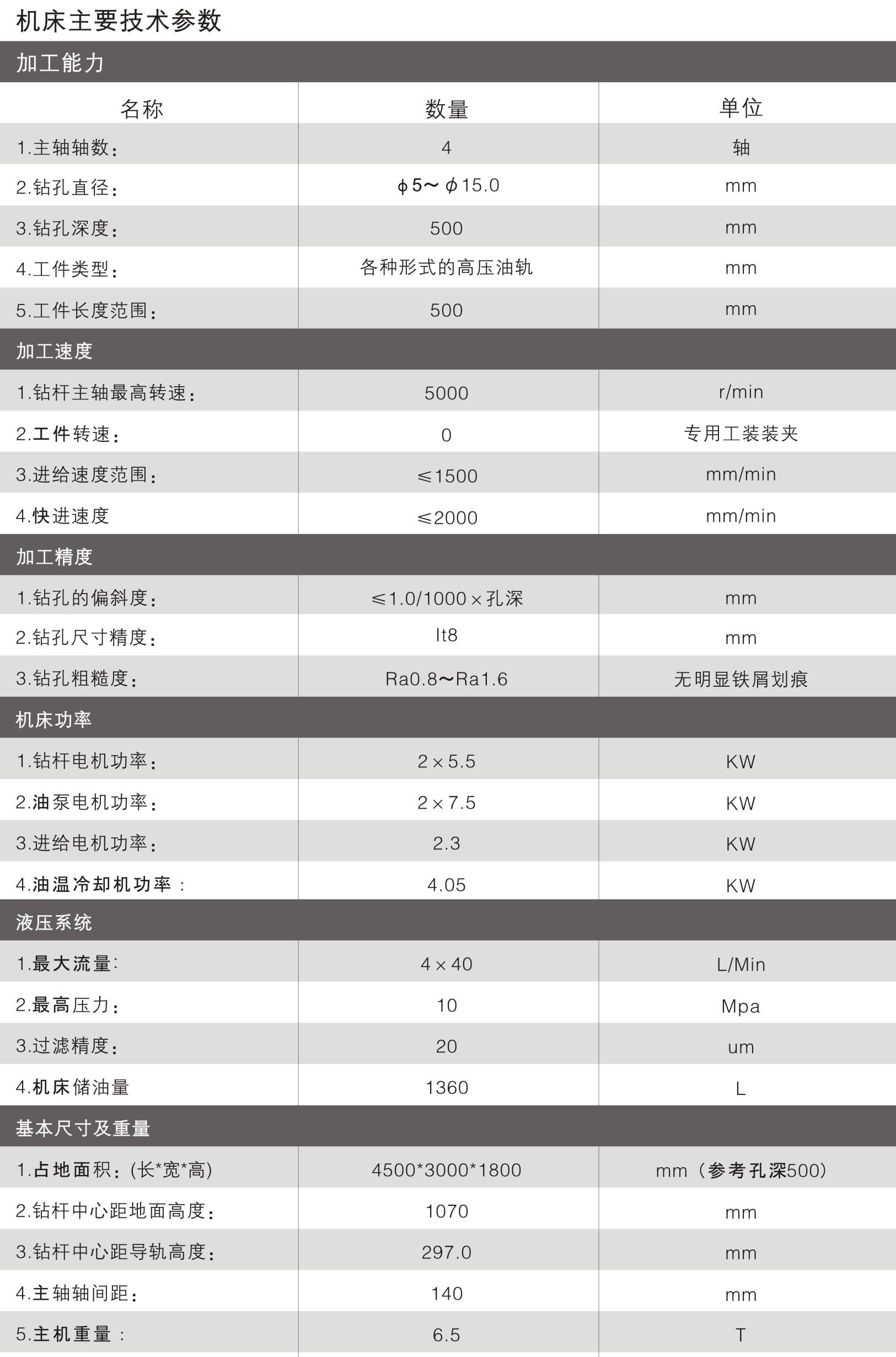 鉆桿:變頻調(diào)速,旋轉且進給;四主軸