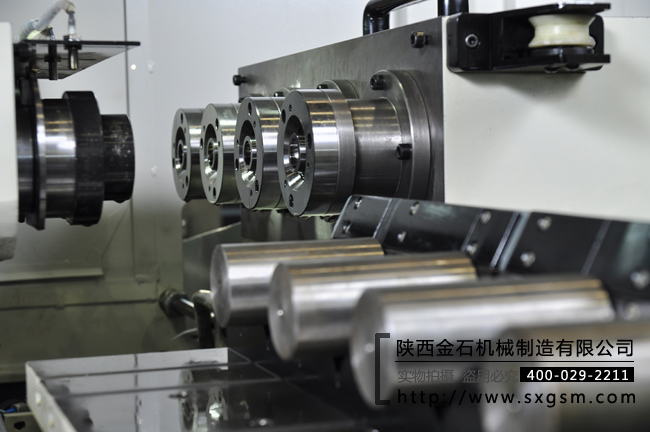 工件裝夾:依靠尾頂及導(dǎo)向套上的錐盤,以工件兩端的倒角準(zhǔn)確定位工件;尾頂液壓伸縮夾緊工件。