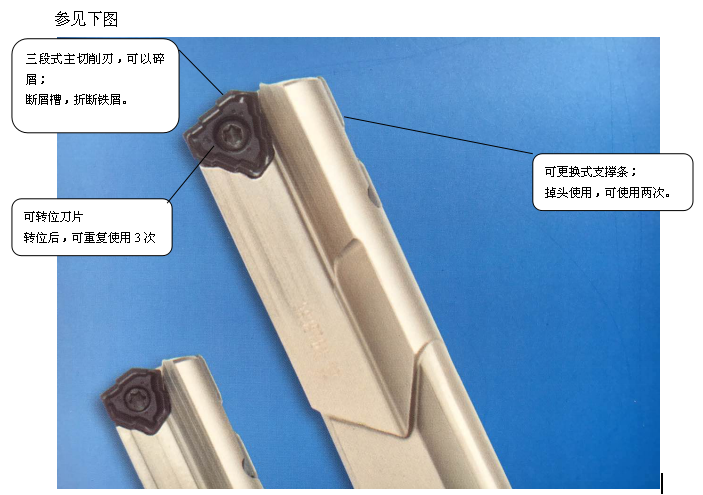 優(yōu)點(diǎn)2:更換刀片省時(shí)簡(jiǎn)便。刀頭磨損后,只需旋轉(zhuǎn)刀片或者更換刀片,不必拆卸鉆桿。大大提高了加工效率,也降低了工人的勞動(dòng)強(qiáng)度。非常適合于自動(dòng)化線上的深孔加工。